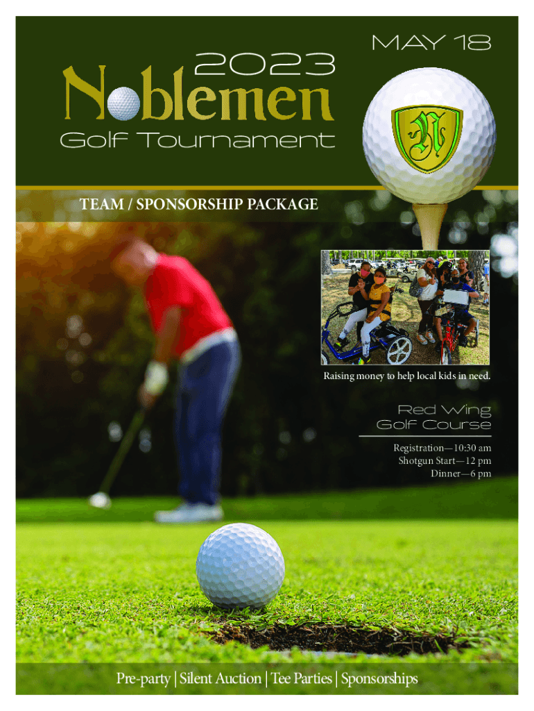 2023MAY 18Golf Tournament TEAM / SPONSORSHIP PACKAGERaising money to help local kids in need. Red Wing Golf Course Registration10:30 am Shotgun Start12 pm Dinner6 pmPreparty | Silent Auction | Tee