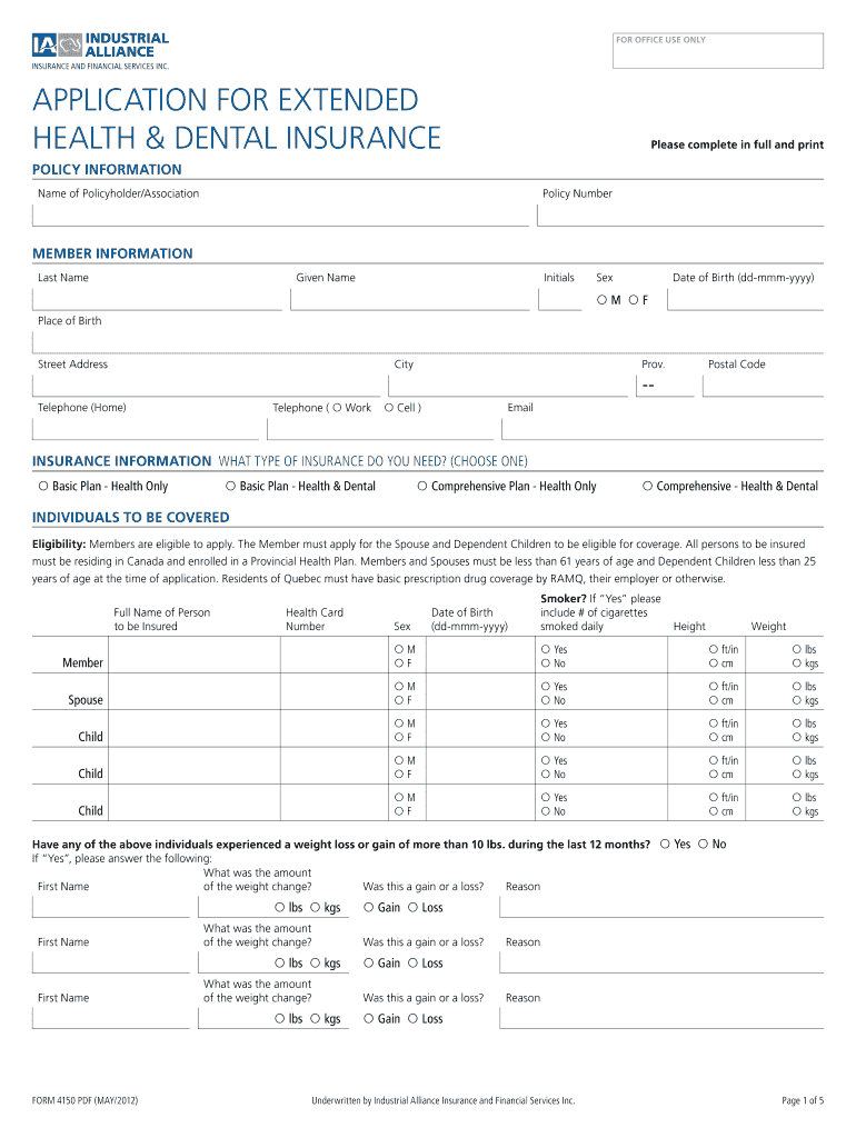The Extended Health & Dental Insurance Application is a critical form utilized by individuals seeking health and dental coverage in Canada. This application aims to provide necessary personal, medical, and insurance details to obtain adequate coverage.