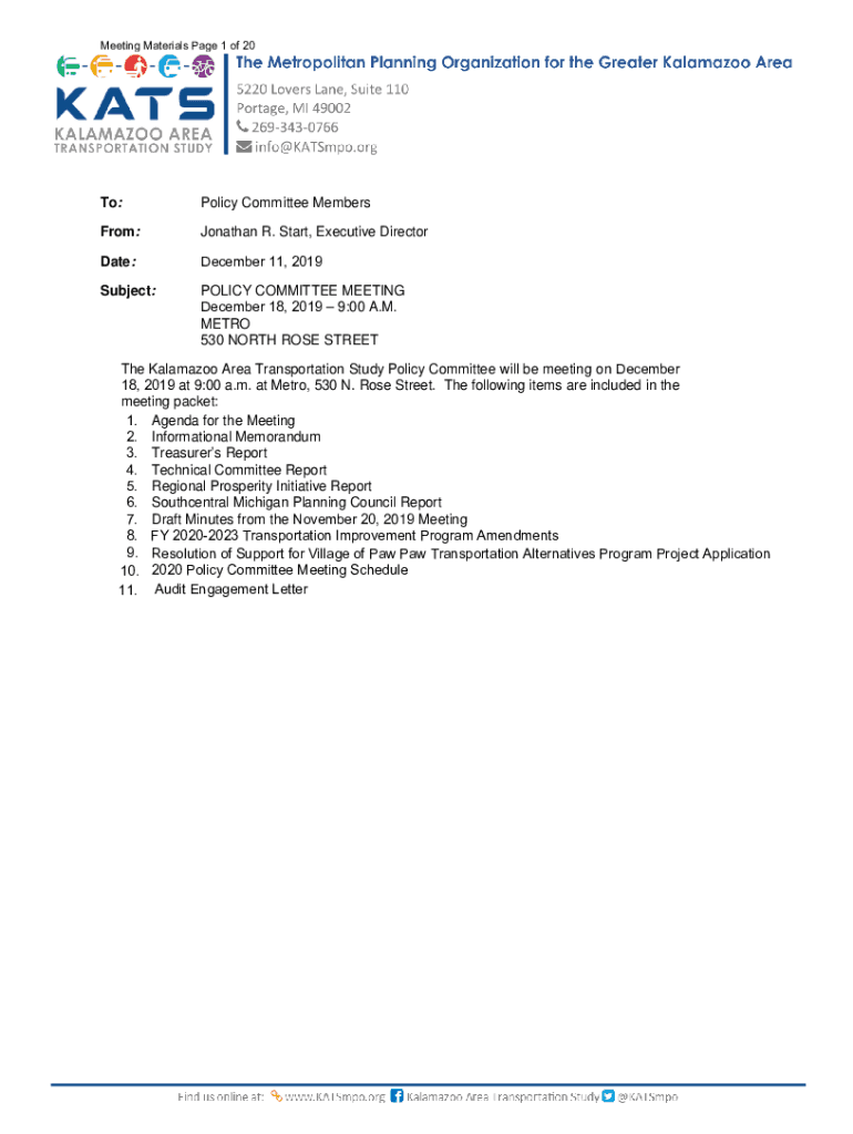 Meeting Materials Page 1 of 20To:Policy Committee MembersFrom:Jonathan R. Start, Executive Directorate:December 11, 2019Subject:POLICY COMMITTEE MEETING