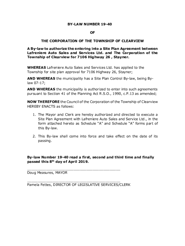 A Bylaw to authorize the entering into a Site Plan Agreement between