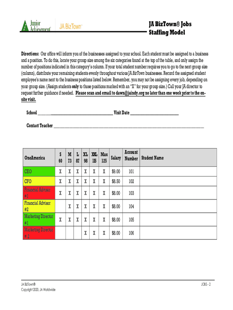 JA Midtown Jobs Staffing Model Directions: Our office will inform you of the businesses assigned to your school. Each student must be assigned to a business and a position. To do this, locate your