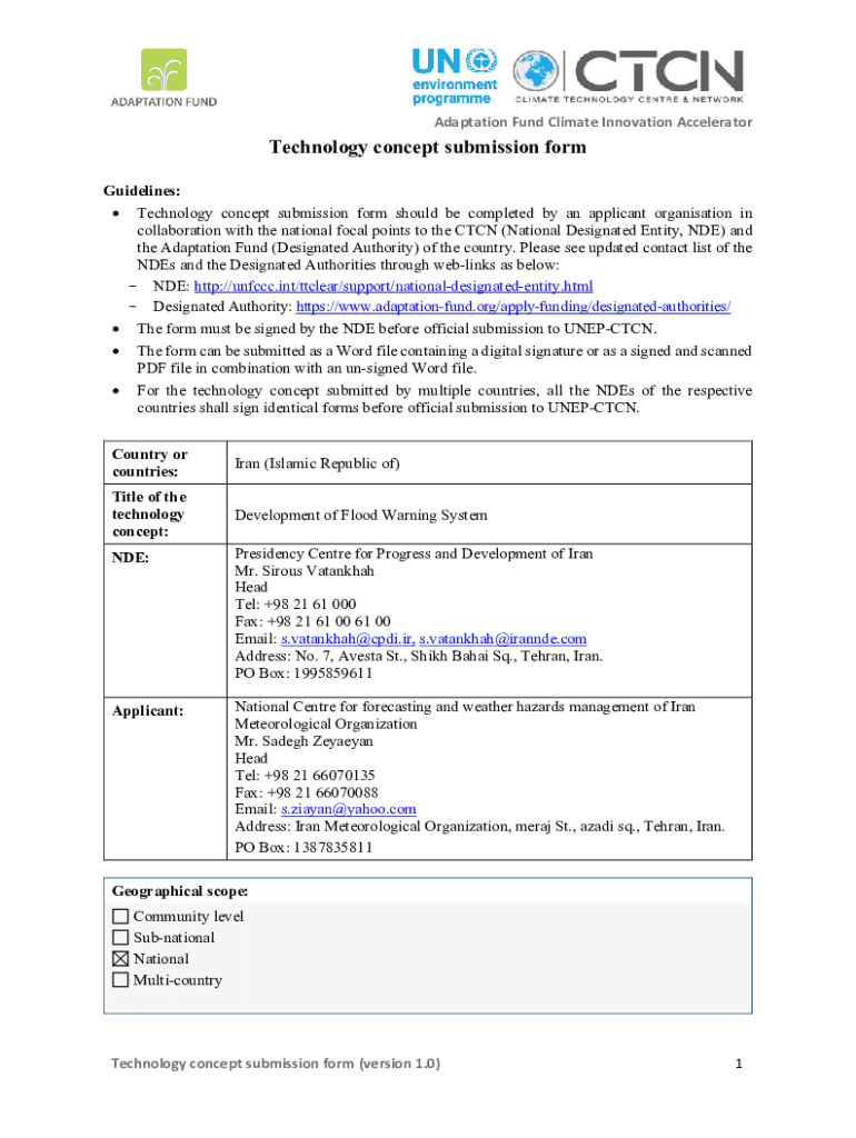 Adaptation Fund Climate Innovation AcceleratorTechnology concept submission form