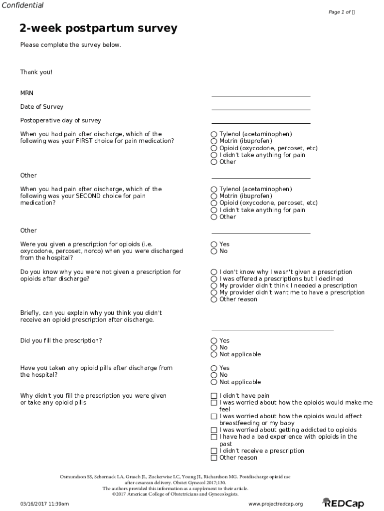 Fill out your 2-week postpartum survey online with pdfFiller!