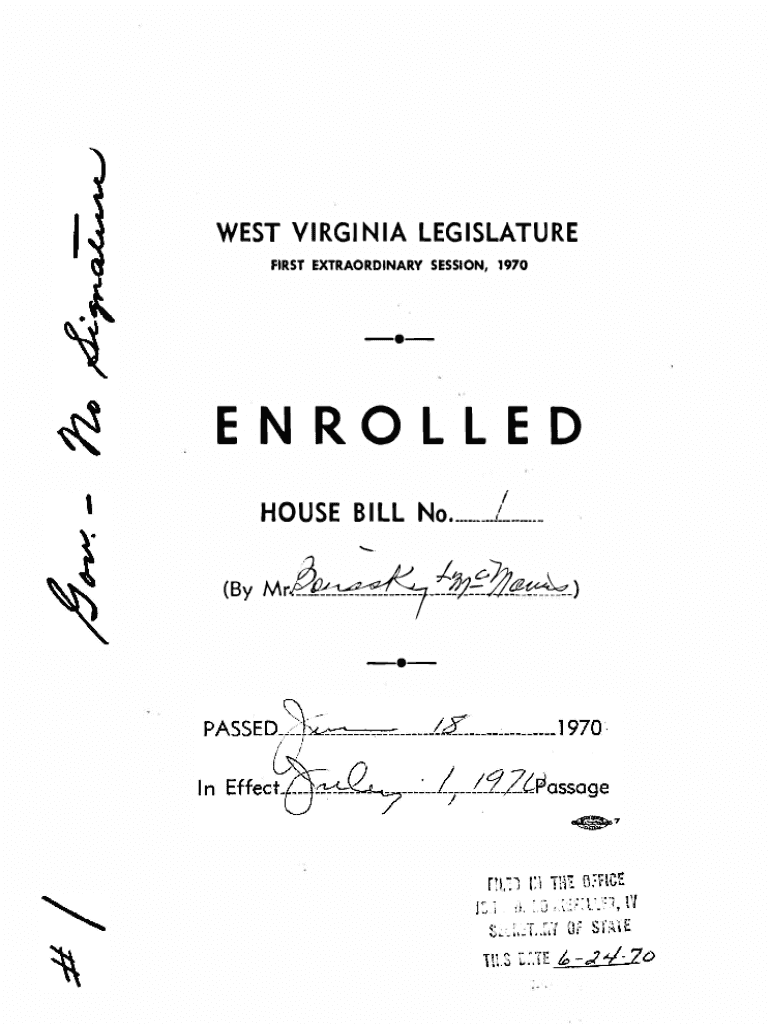 WEST VIRGINIA LEGISLATURE FIRST EXTRAORDINARY SESSION, 1970ENROLLED HOUSE B I LL No. ___ I1___(By Mri3 _/._!:)ENROLLED House Bill No. 1(By MR. SPEAKER, MR. Boars, and MR. McManus)[Passed June 18,
