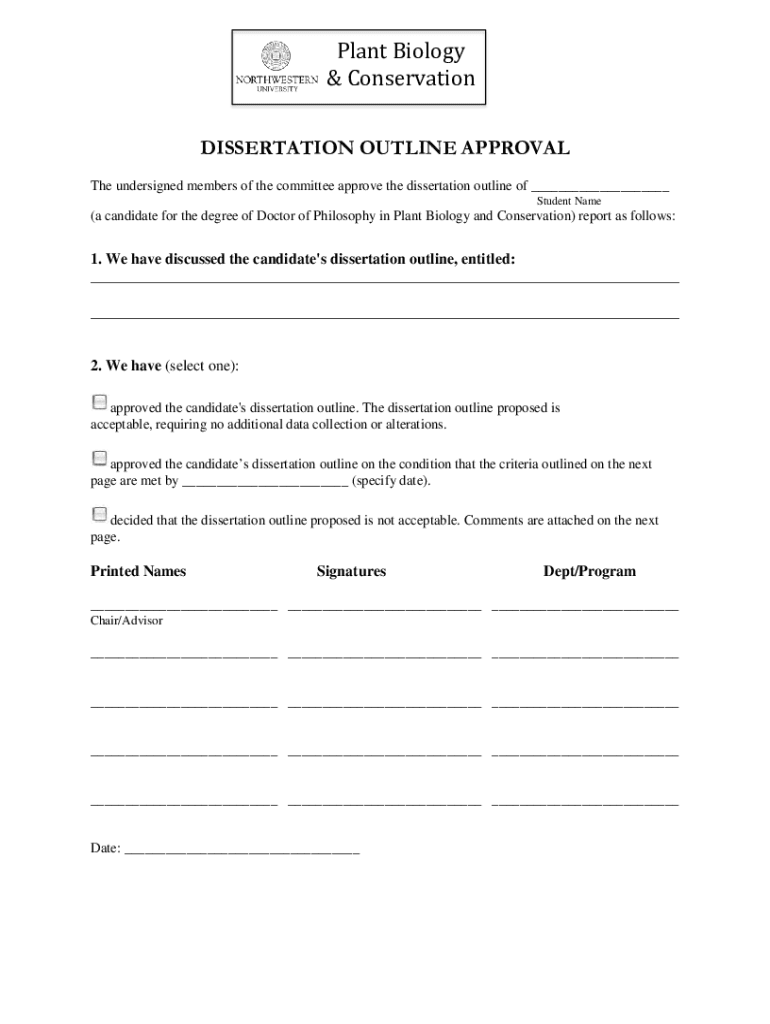 & ConservationDISSERTATION OUTLINE APPROVAL