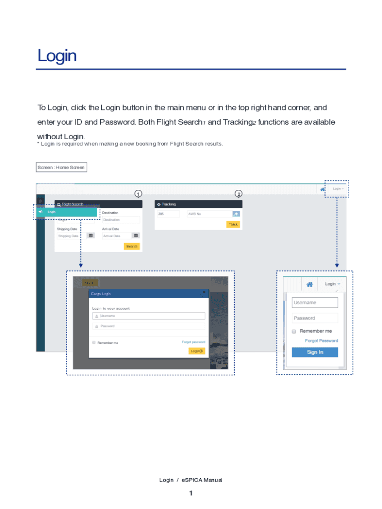 Login To Login, click the Login button in the main menu or in the top right-hand corner, and enter your ID and Password. Both Flight Search1 and Tracking2 functions are available without Login. *