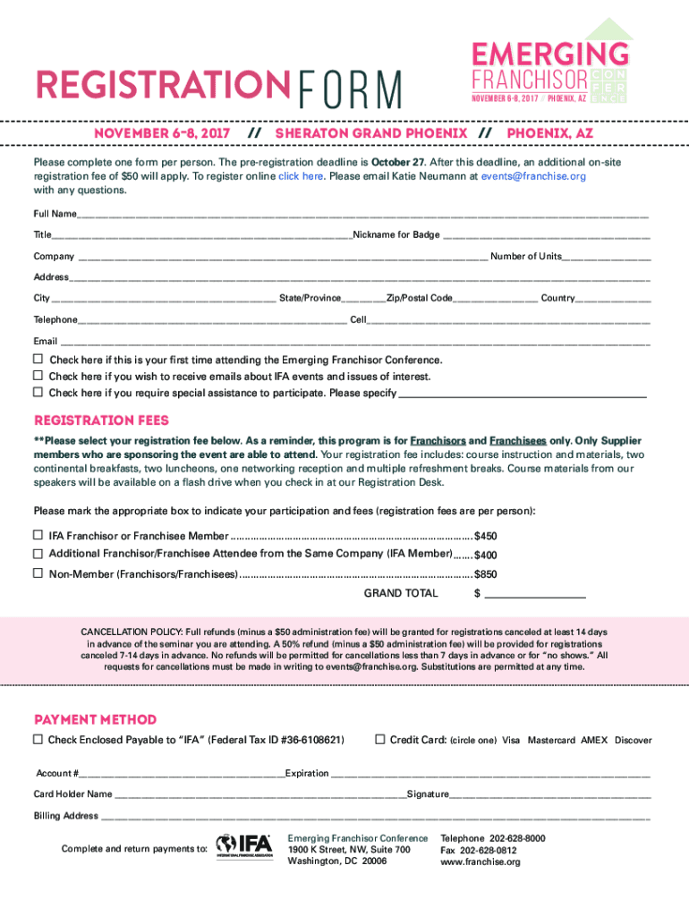 Franchise.org/efcEMERGING FRANCHISOR NOVEMBER 68, 2017 // PHOENIX, REGISTER: franchise.org/efcEMERGING FRANCHISOR NOVEMBER 68, 2017 // PHOENIX, ADJOIN US IN PHOENIX, AZ, NOVEMBER 68, 2017 for IFA's
