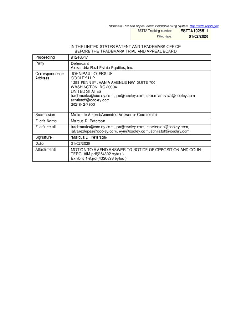 Trademark Trial and Appeal Board Electronic Filing System. http://estta.uspto.gov ETTA Tracking number: Filing date:ProceedingESTTA1026511 01/02/2020IN THE UNITED STATES PATENT AND TRADEMARK OFFICE