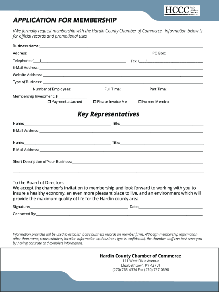 I/We formally request membership with the Hardin County Chamber of Commerce. Information below is