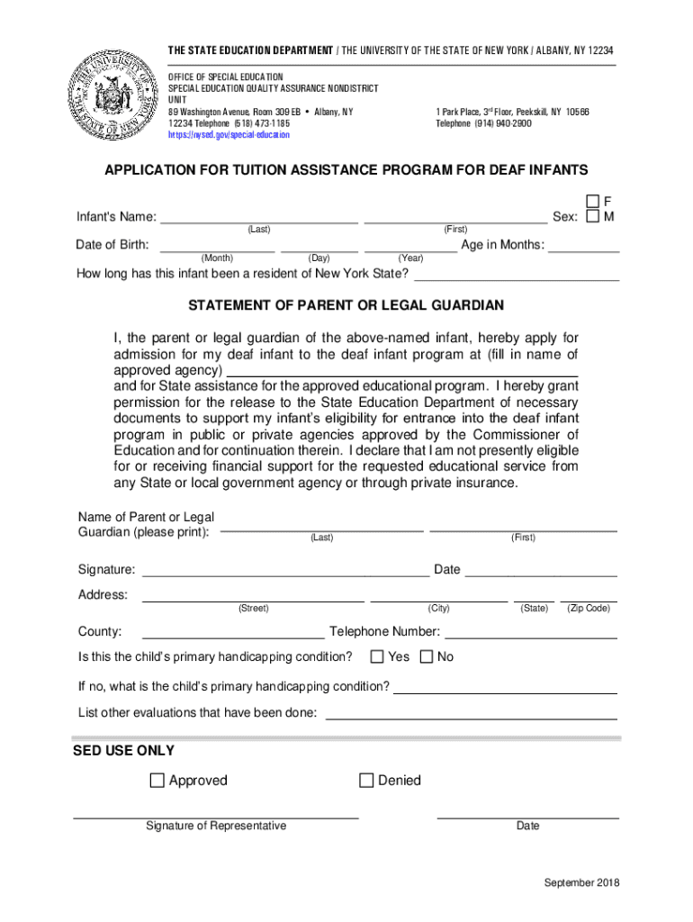 THE STATE EDUCATION DEPARTMENT / THE UNIVERSITY OF THE STATE OF NEW YORK / ALBANY, NY 12234 OFFICE OF SPECIAL EDUCATION QUALITY ASSURANCE DISTRICT UNIT 89 Washington Avenue, Room 309 EX Albany, NY