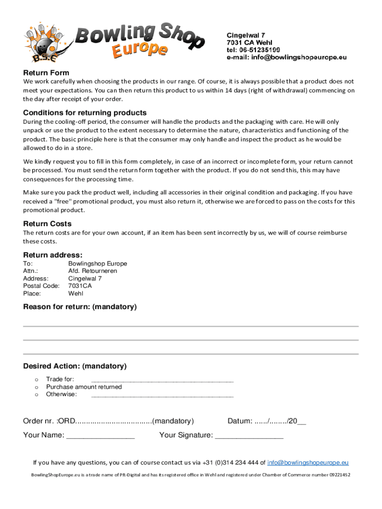 Return Form We work carefully when choosing the products in our range. Of course, it is always possible that a product does not meet your expectations. You can then return this product to us within