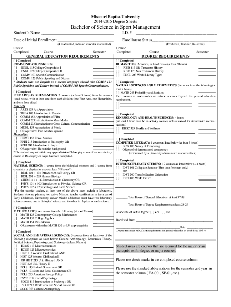 20142015 Degree SheetsBachelor of Science in Sport Management