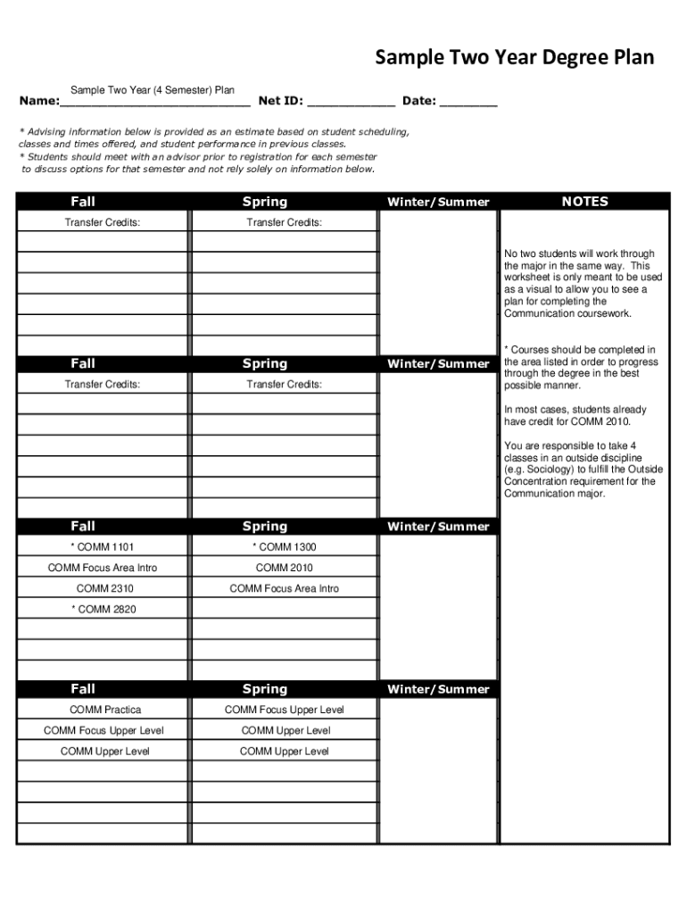 Sample Two-Year Degree Plan Sample Two Year Degree Planned: Sample