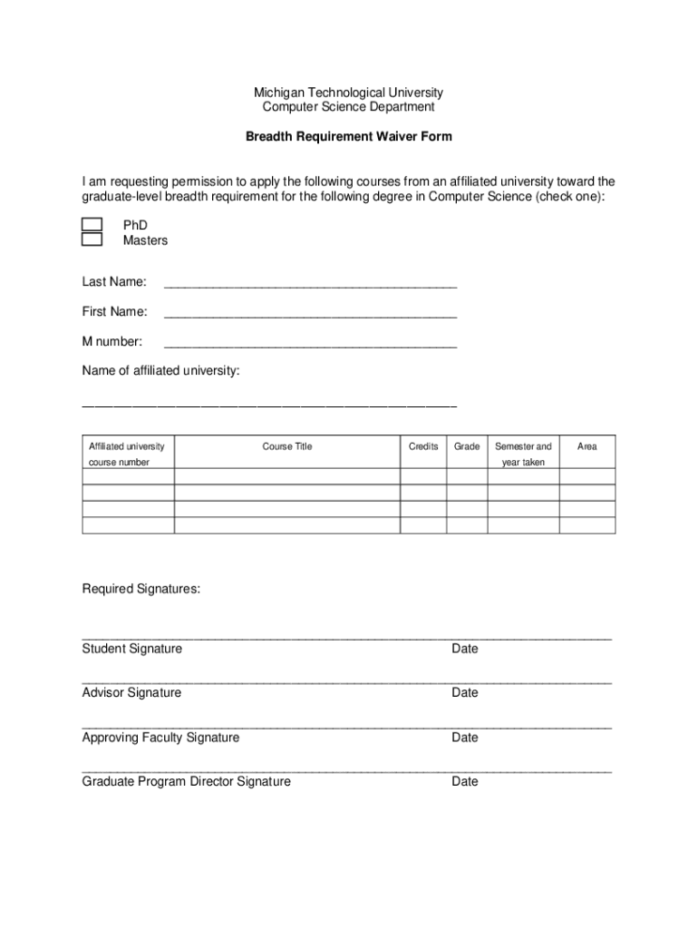 Breadth Requirement Waiver Form is not the form you're looking for?Search for another form here.
