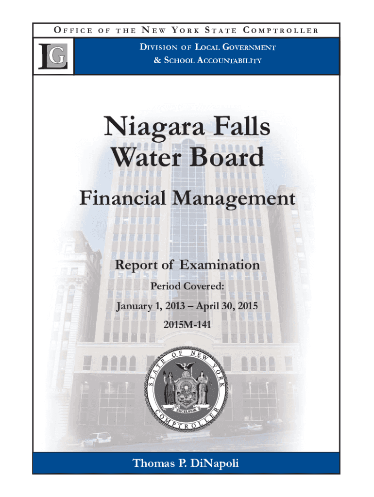 OFFICE THEN EW YORK STATE COMPTROLLER DI VISION OF LOCAL GOVERNMENT & SCHOOL ACCOUNTABILITY Niagara Falls Water Board Financial Management Report of Examination Period Covered: January 1, 2013, April