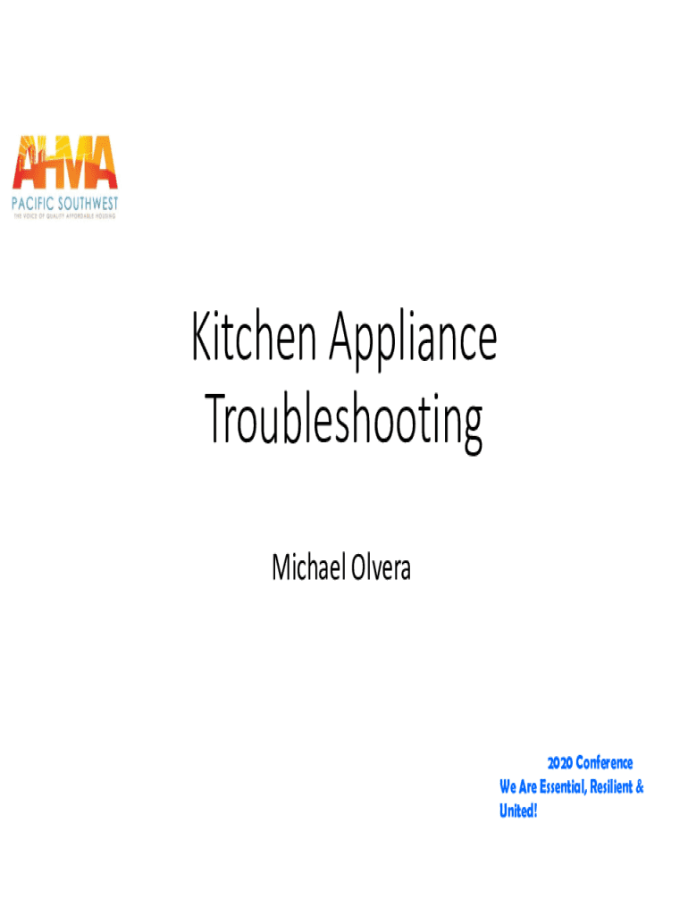 Kitchen Appliance Troubleshooting Michael Olvera2020 Conference We Are Essential, Resilient & United!APPLIANCE TROUBLESHOOTINGThis presentation is the proprietary property of HD Supply. These materials