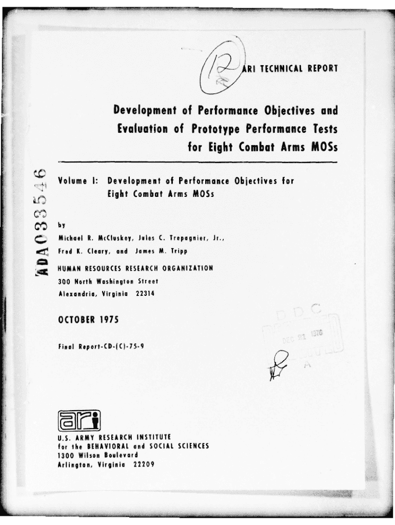 RI T K HI UL Redevelopment of Performance Objectives and Evaluation of Prototype Performance Test s for Eight Combat Arms Moss A. Volume I: Development of Performance Objectives for Eight Combat Arms