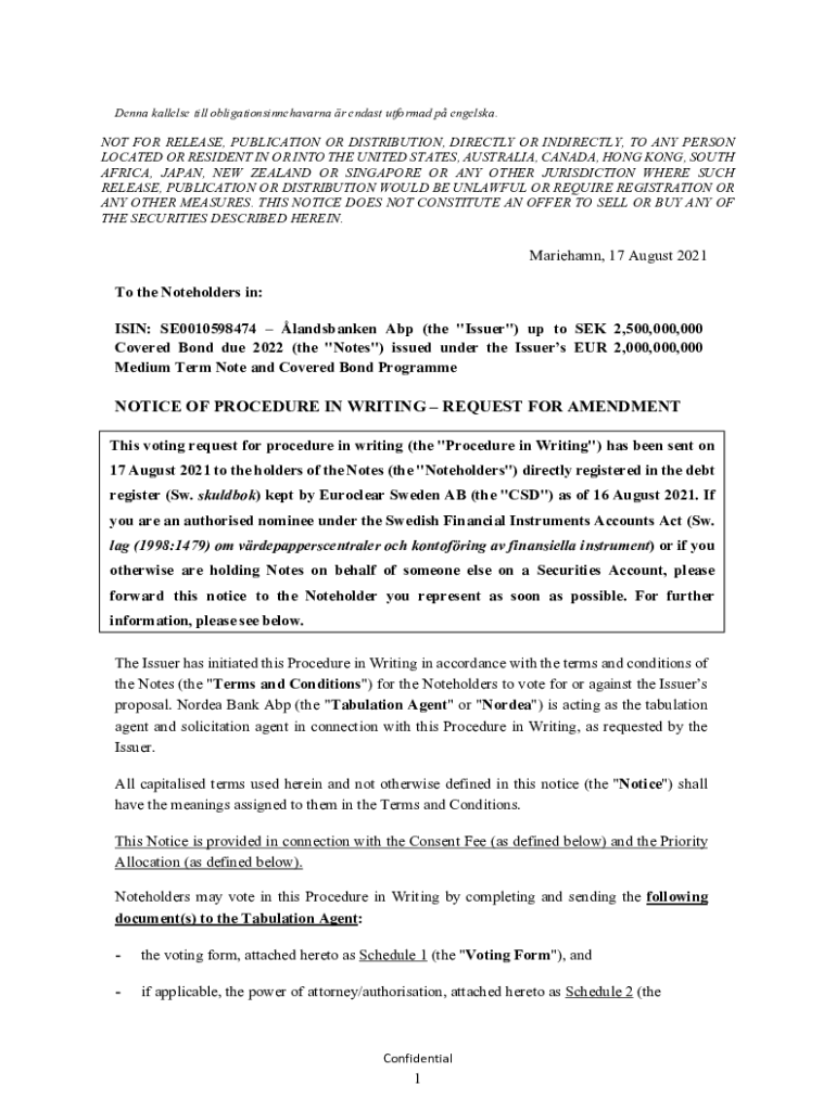 Donna allele till obligationsinnehavarna r east unformed p Engels. NOT FOR RELEASE, PUBLICATION OR DISTRIBUTION, DIRECTLY OR INDIRECTLY, TO ANY PERSON