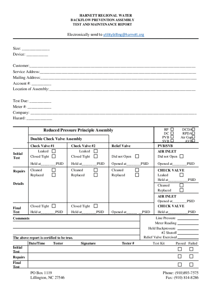 TEST AND MAINTENANCE REPORTElectronically send to utilitybilling@harnett.org