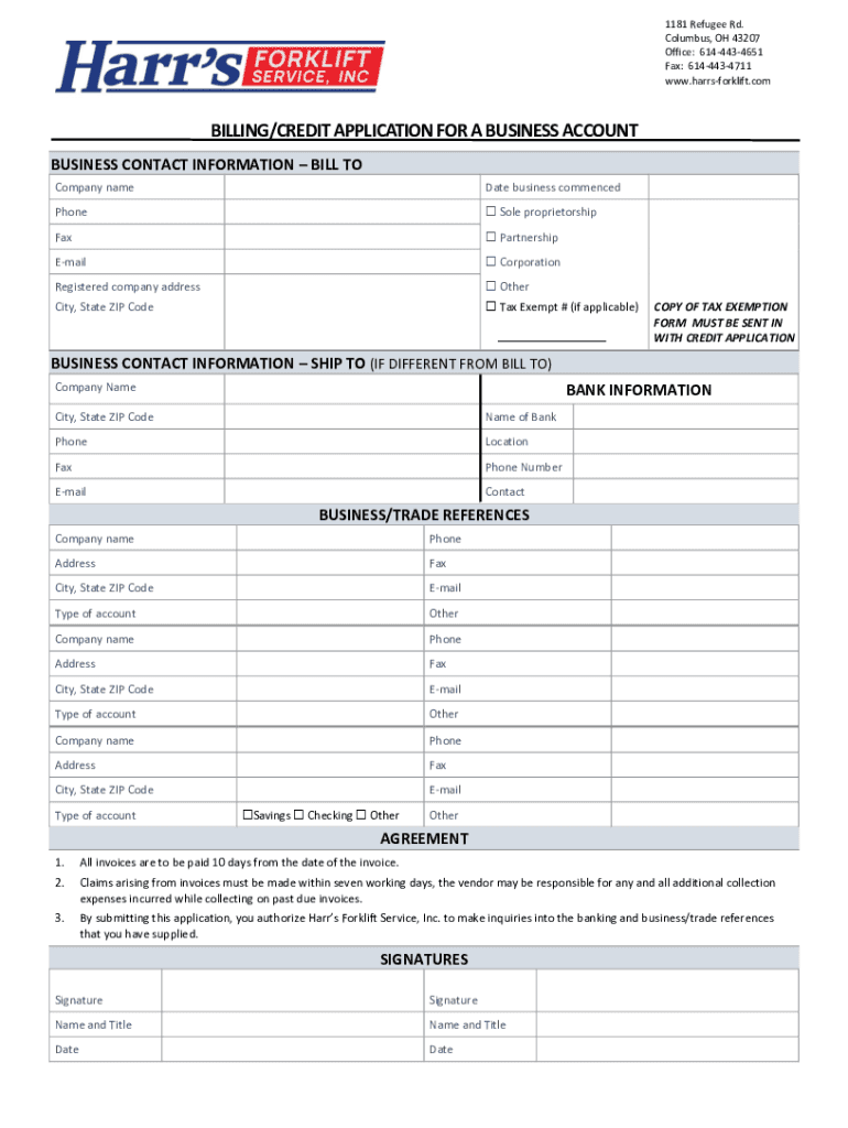 www.harrsforklift.comBILLING/CREDIT APPLICATION FOR A BUSINESS ACCOUNT