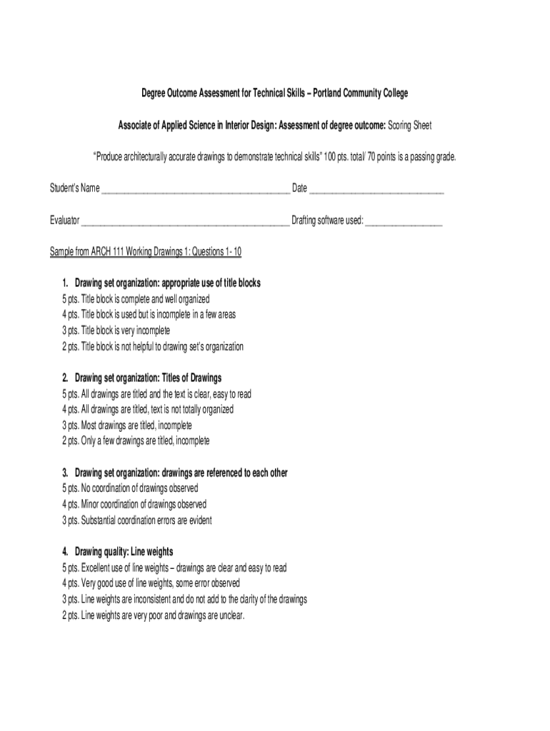 Degree Outcome Assessment for Technical Skills Portland Community College Associate of Applied Science in Interior Design: Assessment of degree outcome: Scoring Sheet Produce architecturally accurate