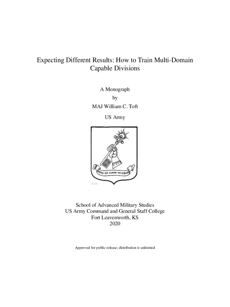 Expecting Different Results: How to Train Multigrain Capable Divisions A Monograph by MAJ William C. Soft US Preschool of Advanced Military Studies US Army Command and General Staff College Fort Leavenworth,