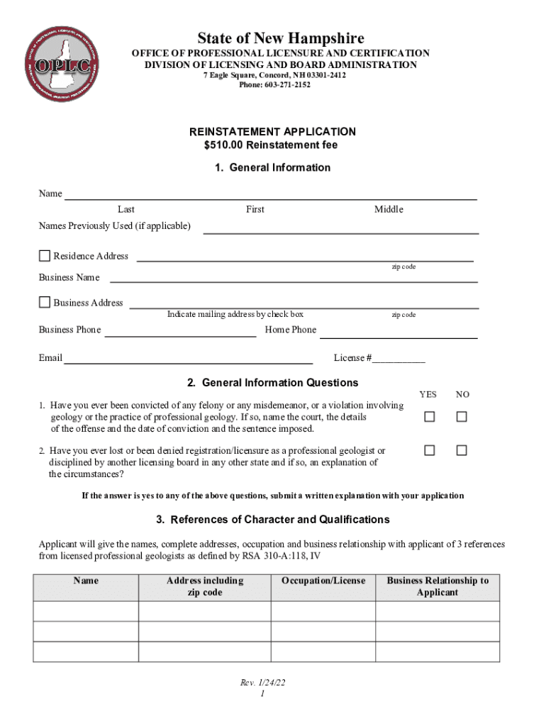 Phone: 6032712152REINSTATEMENT APPLICATION