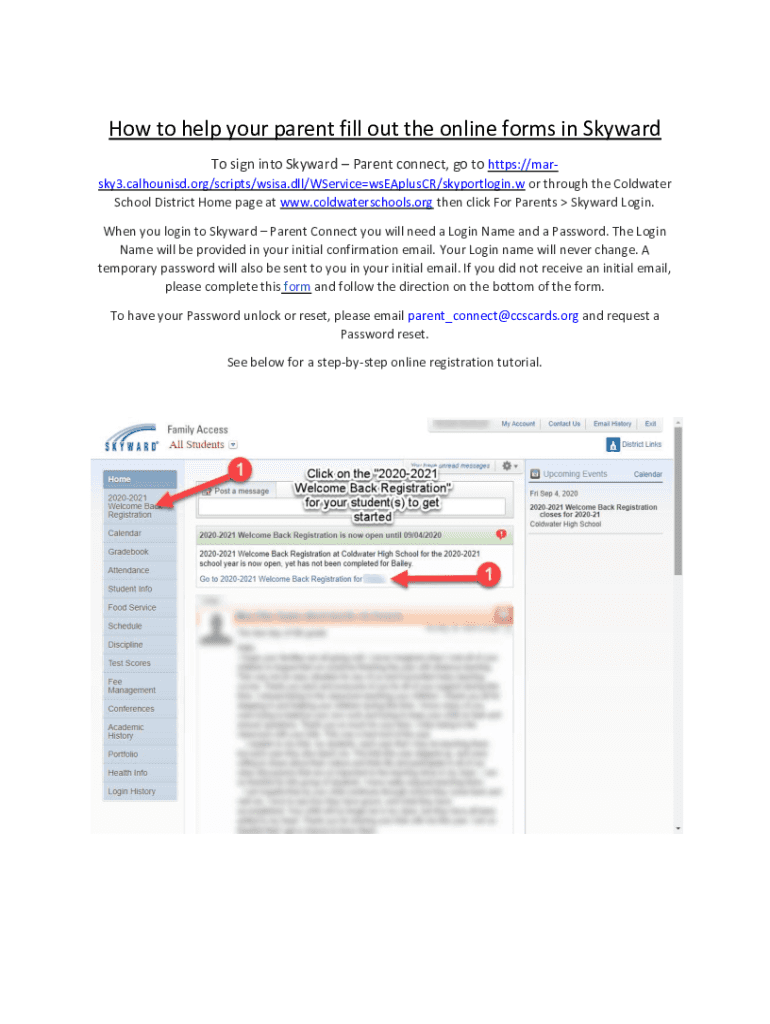 How to help your parent fill out the online forms in Skyward To sign in to Skyward Parent connect, go to https://marsky3.calhounisd.org/scripts/wsisa.dll/WServicewsEAplusCR/skyportlogin.w or through