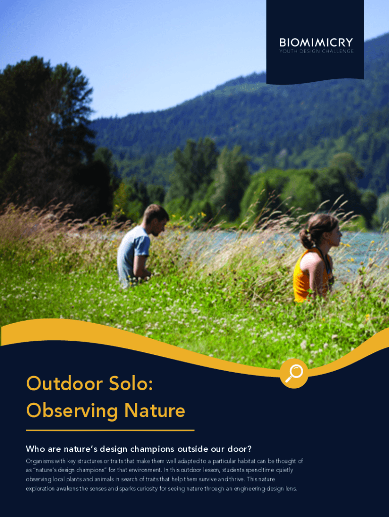 Outdoor Solo: Observing Nature Who are natures design champions outside our door? Organisms with key structures or traits that make them well adapted to a particular habitat can be thought of as natures