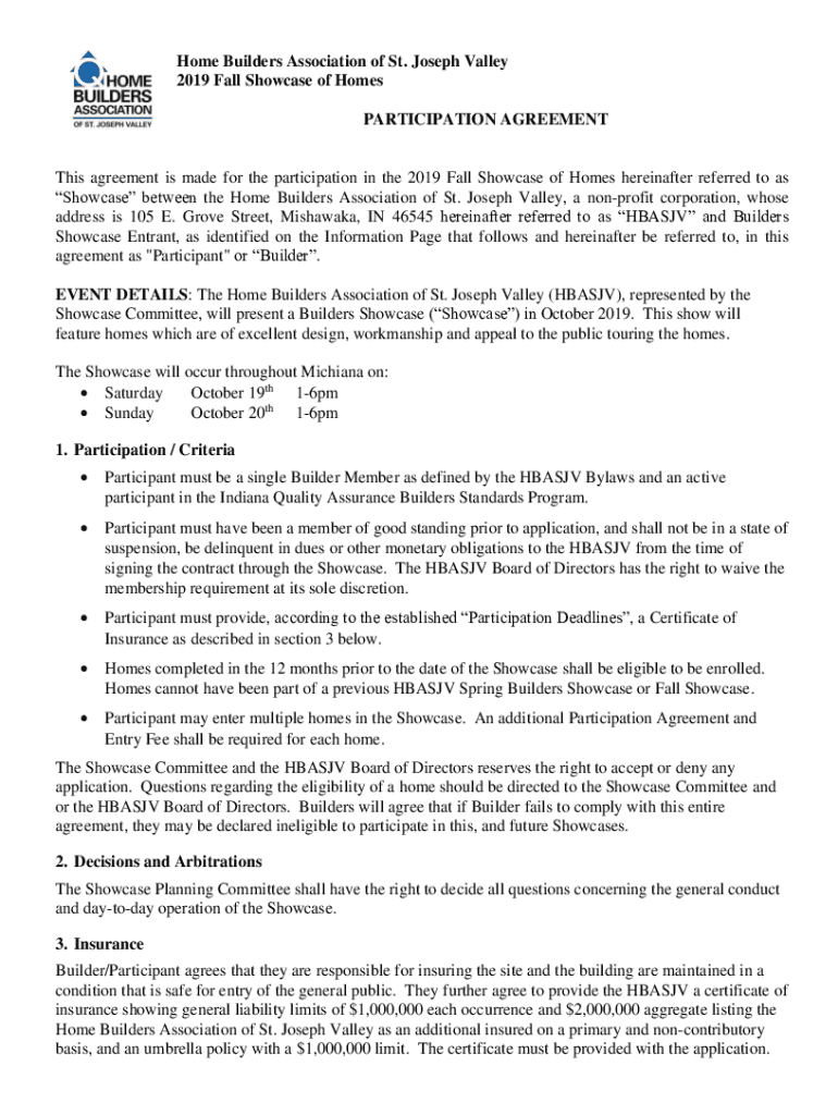 PARTICIPATION Agreements agreement is made for the participation in the 2019 Fall Showcase of Homes hereinafter referred
