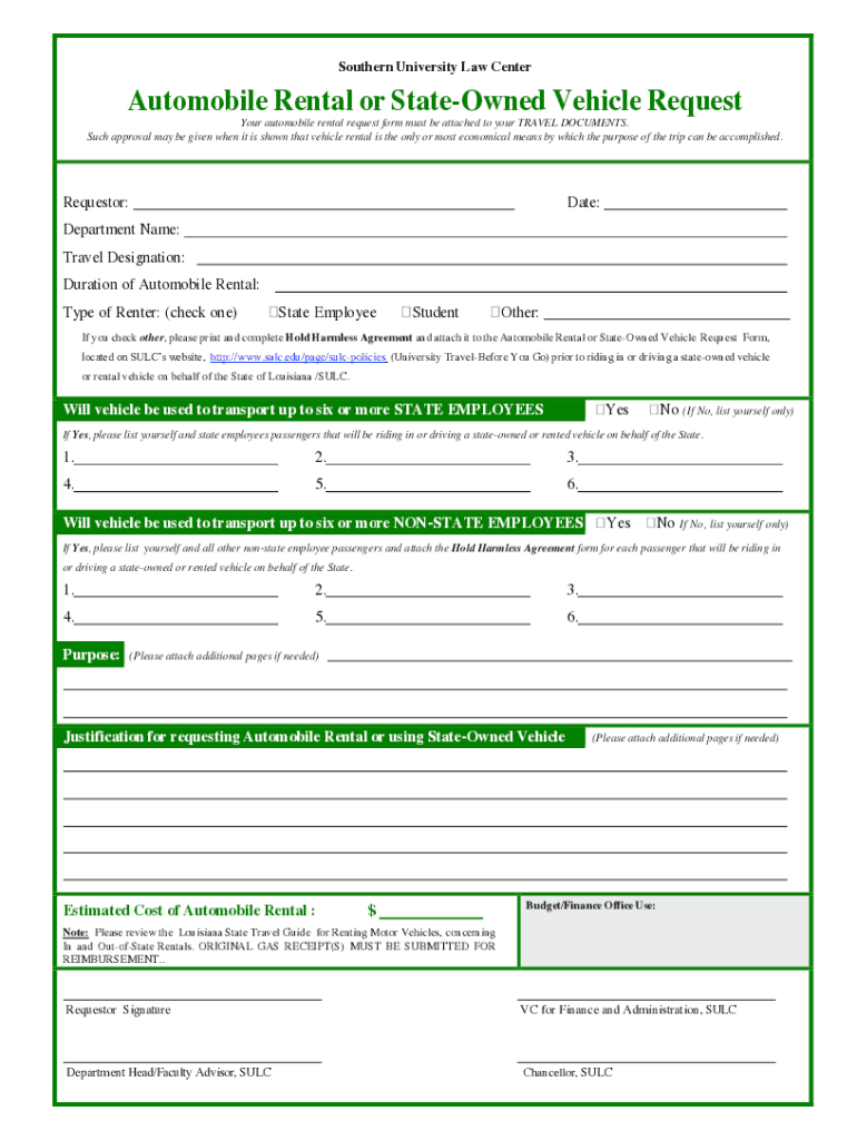 Southern University Law CenterAutomobile Rental or State-owned Vehicle Request