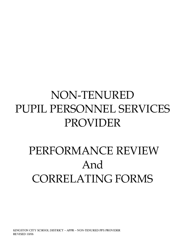 NONTENURED PUPIL PERSONNEL SERVICES PROVIDER PERFORMANCE REVIEW And CORRELATING FORMSKINGSTON CITY SCHOOL DISTRICT APPR NONTENURED PPS PROVIDER REVISED 10/06NONTENURED PPS PROVIDER CYCLE Nontenured