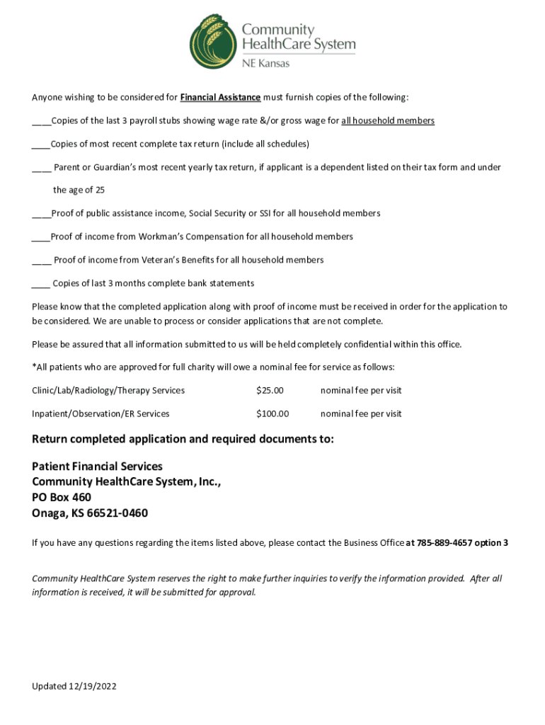 Get the free Anyone wishing to be considered for Financial Assistance must furnish copies of the ...