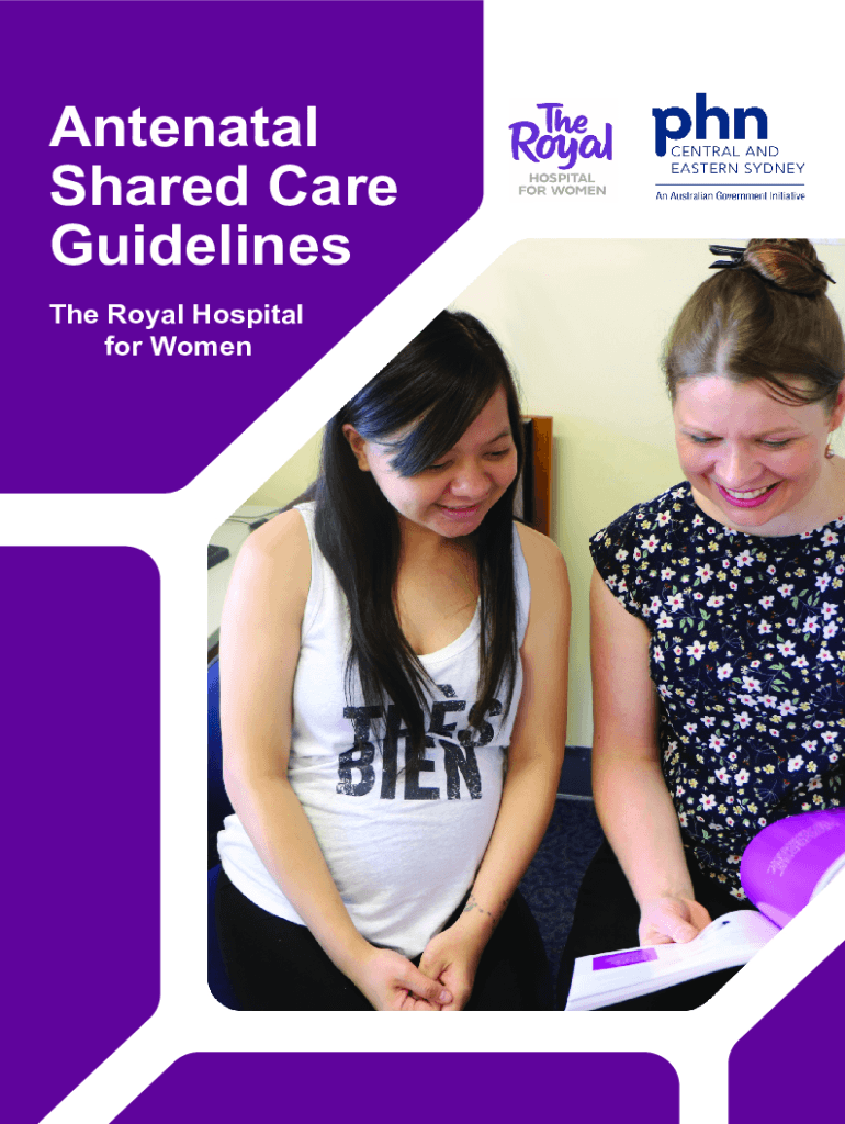 Antenatal Shared Care Guidelines The Royal Hospital for Women GP ANTENATAL SHARED CARE RESOURCE MANUALFOREWARD Welcome to the Royal Hospital for Women (RAW) Antenatal Shared Care Program (ANSI). This