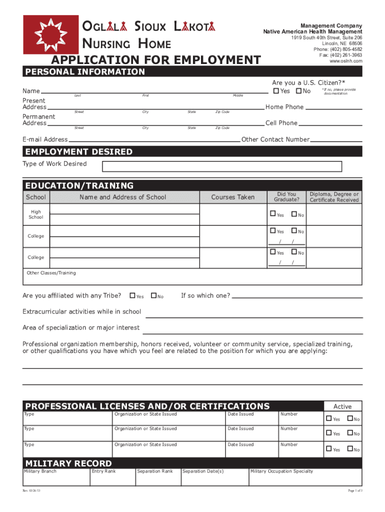www.oslnh.comAPPLICATION FOR EMPLOYMENTPERSONAL INFORMATIONNameLastFirstMiddleAre
