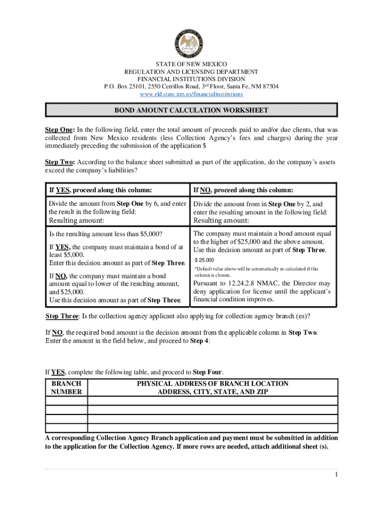 STATE OF NEW MEXICO REGULATION AND LICENSING DEPARTMENT FINANCIAL INSTITUTIONS DIVISION P.O. Box 25101, 2550 Carrillo Road, 3rd Floor, Santa Fe, NM 87504 www.rld.state.nm.us/financialinstitutionsBOND