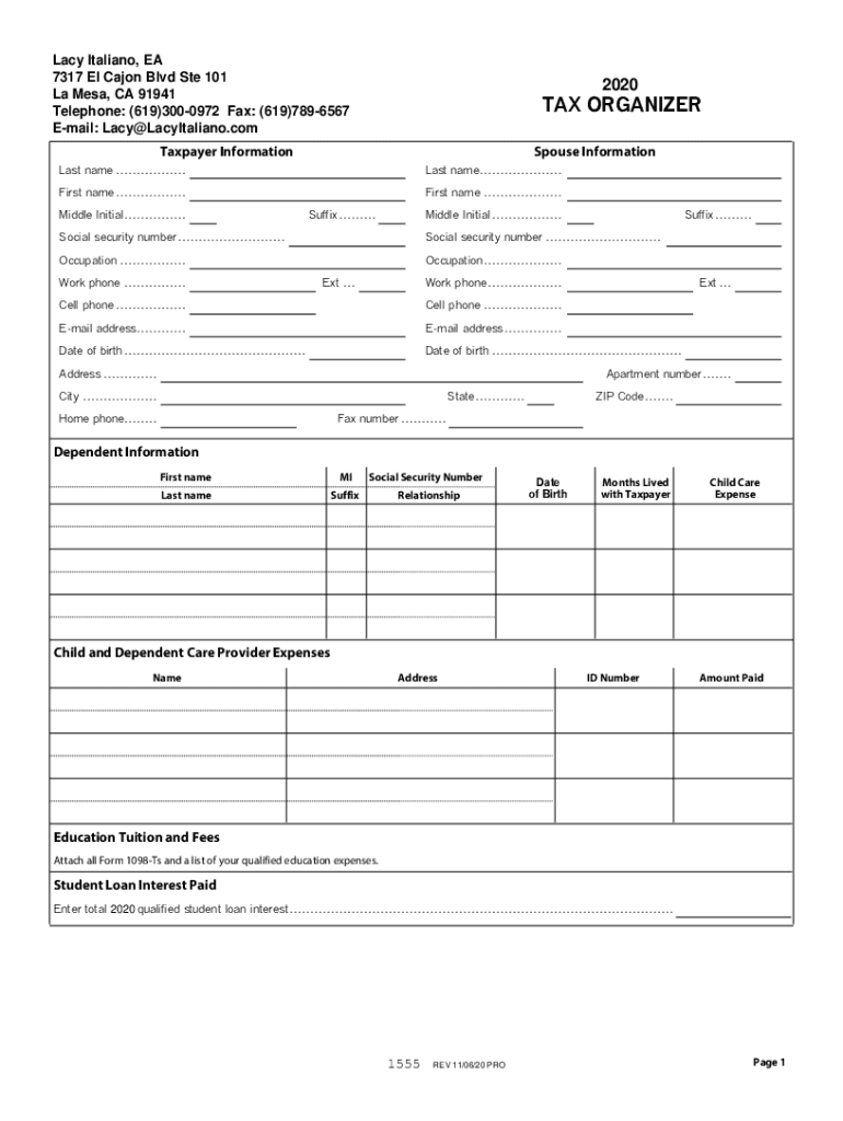 Email: Lacy@LacyItaliano.com2020TAX ORGANIZERTaxpayer InformationSpouse Informational name .................