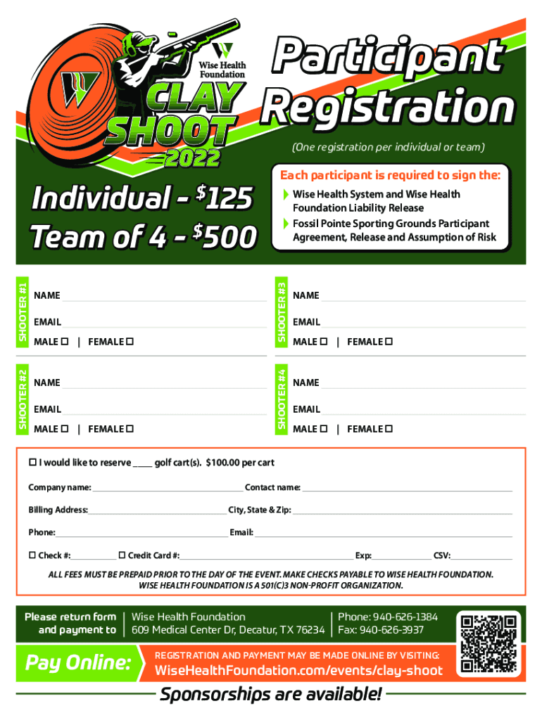 (One registration per individual or team)SHOOTER #1SHOOTER #3