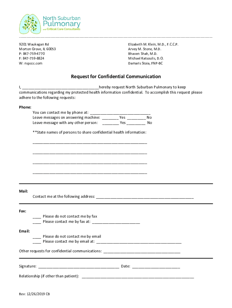 Patients who receive pulmonary care services from North Suburban Pulmonary are required to file the necessary paperwork.