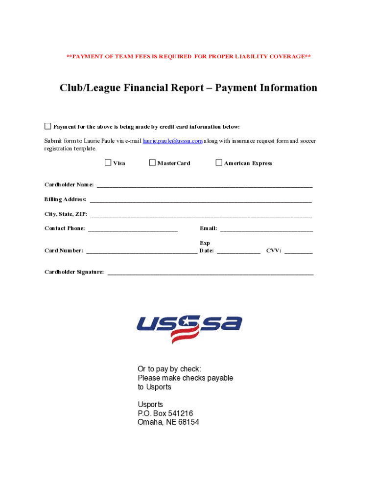 Get the free Club/League Financial ReportPayment Information