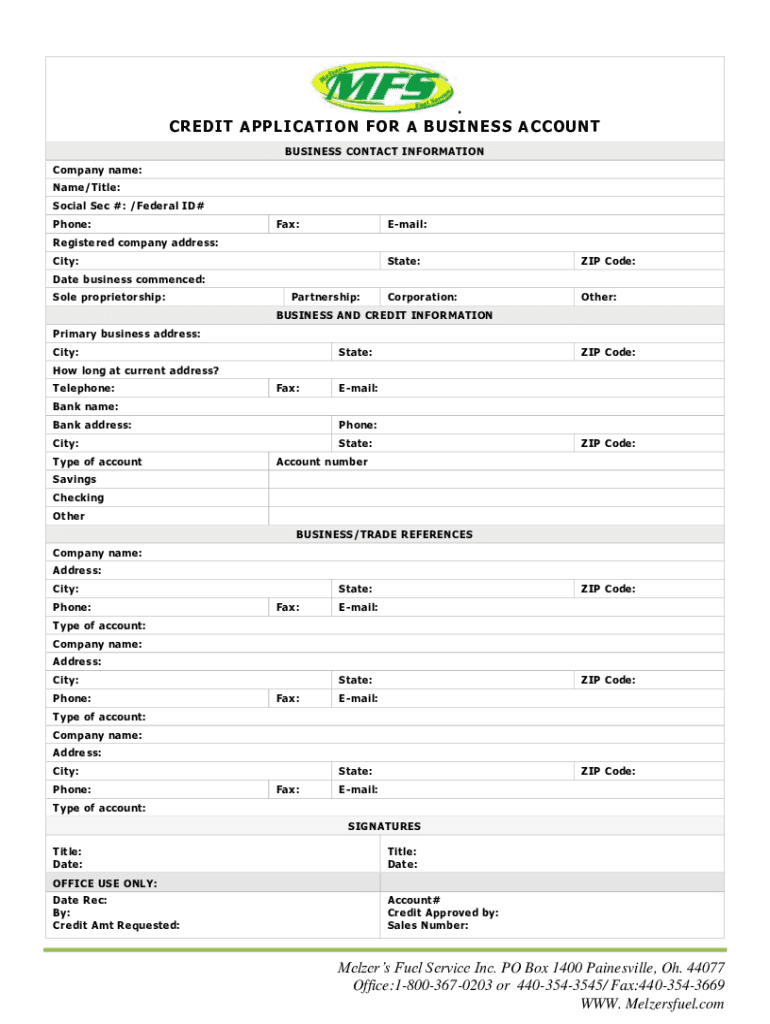 .CREDIT APPLICATION F OR A BUSINESS ACCOUNT BUSINESS CONTACT INFORMATION Company name: Name/Title: Social Sec #: /Federal ID# Phone:Fax:Email:Registered company address: City:State:ZIP Code:Corporation:Other:Date