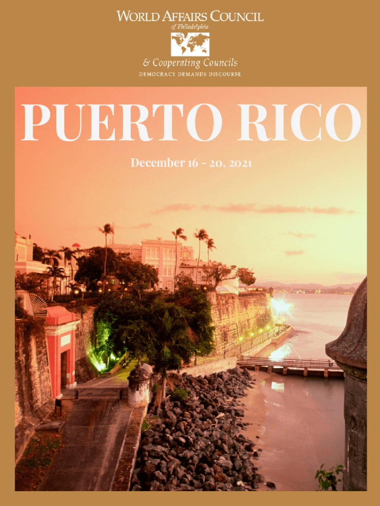 PUERTO RICO December 16 20, 2021PUERTO RICO COMPLEX AND CAPTIVATING ISLAND GEM Discover the many treasures of this Caribbean gem while learning about and supporting the island\'s efforts to rebuild
