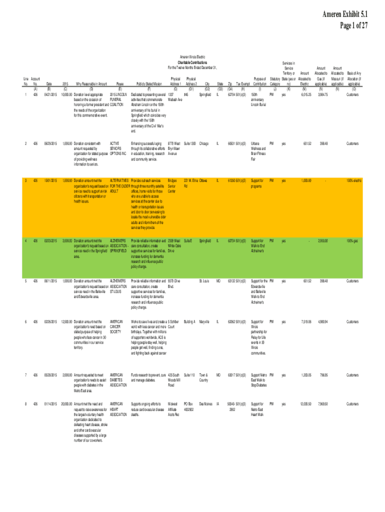 Mean Exhibit 5.1-Page 1 of 27Ameren Illinois Electric Charitable Contributions For the Twelve Months Ended December 31, Line No. 1Account No. (A) 426Physical Physical Address 1 Address 2 (G) (G1)