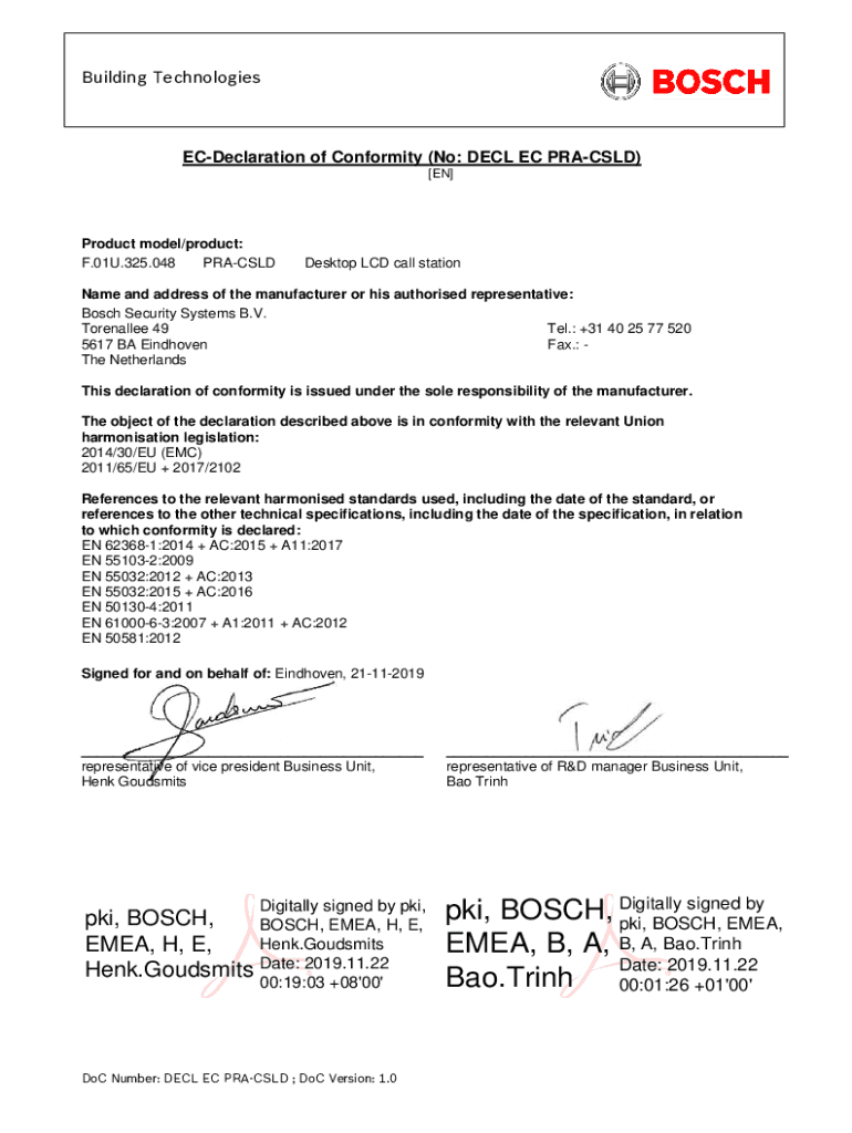 Building TechnologiesECDeclaration of Conformity (No: DEC LEC PRAISED)