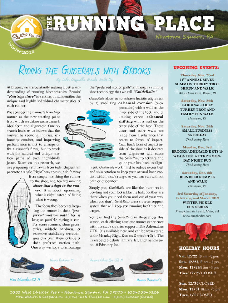 Newton Square, PA WNT her 2 0 18iRidingtheGuiderailsBy John Campbell, Brooks Sales Repeat Brooks, we are constantly seeking a better understanding of running biomechanics. Brooks\' Run Signature is