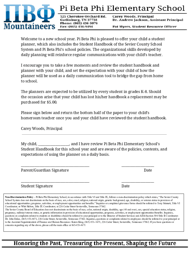 Welcome to a new school year. Pi Beta Phi is pleased to offer your child a student planner, which also includes the Student Handbook of the Sever County School System and Pi Beta Phis school policies.