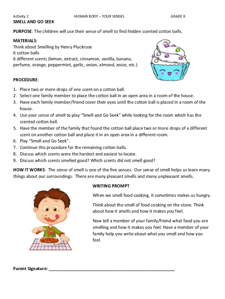 Activity 2HUMAN BODY YOUR SENSESGRADE SMELL AND GO SEEK