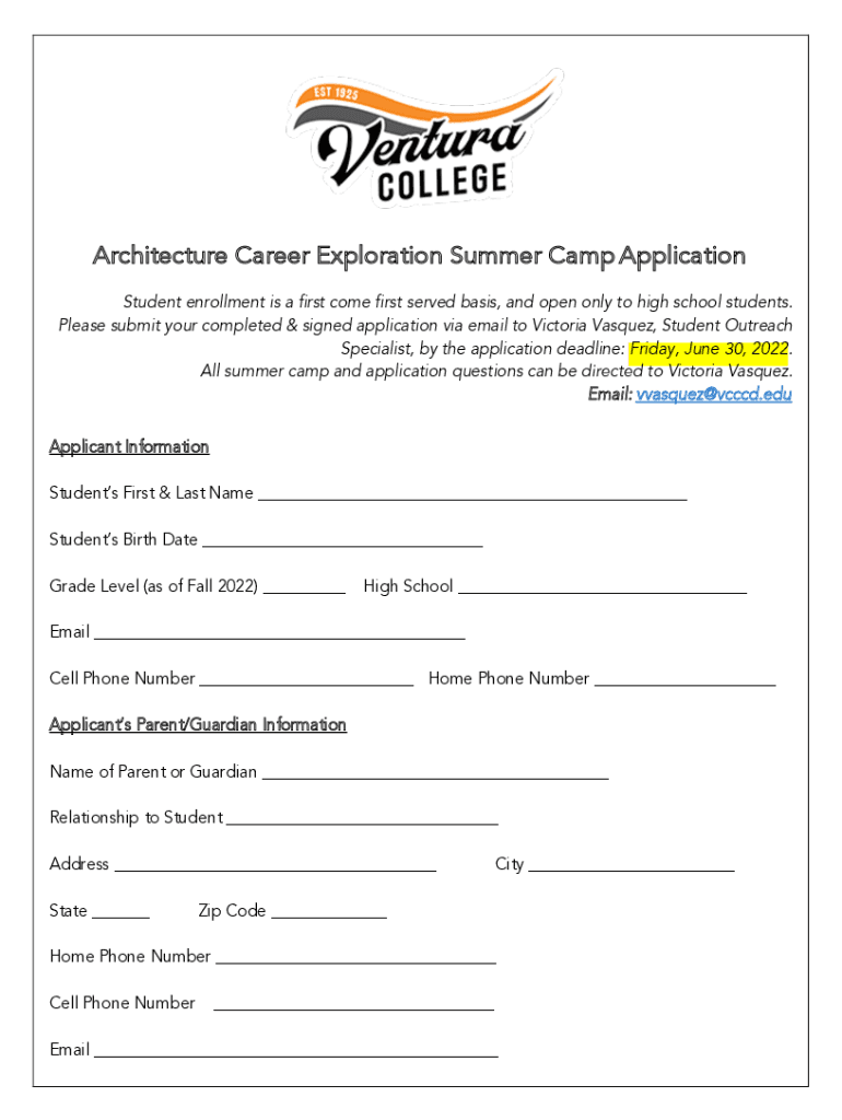 Get the free Architecture Career Exploration Summer Camp Application.docx