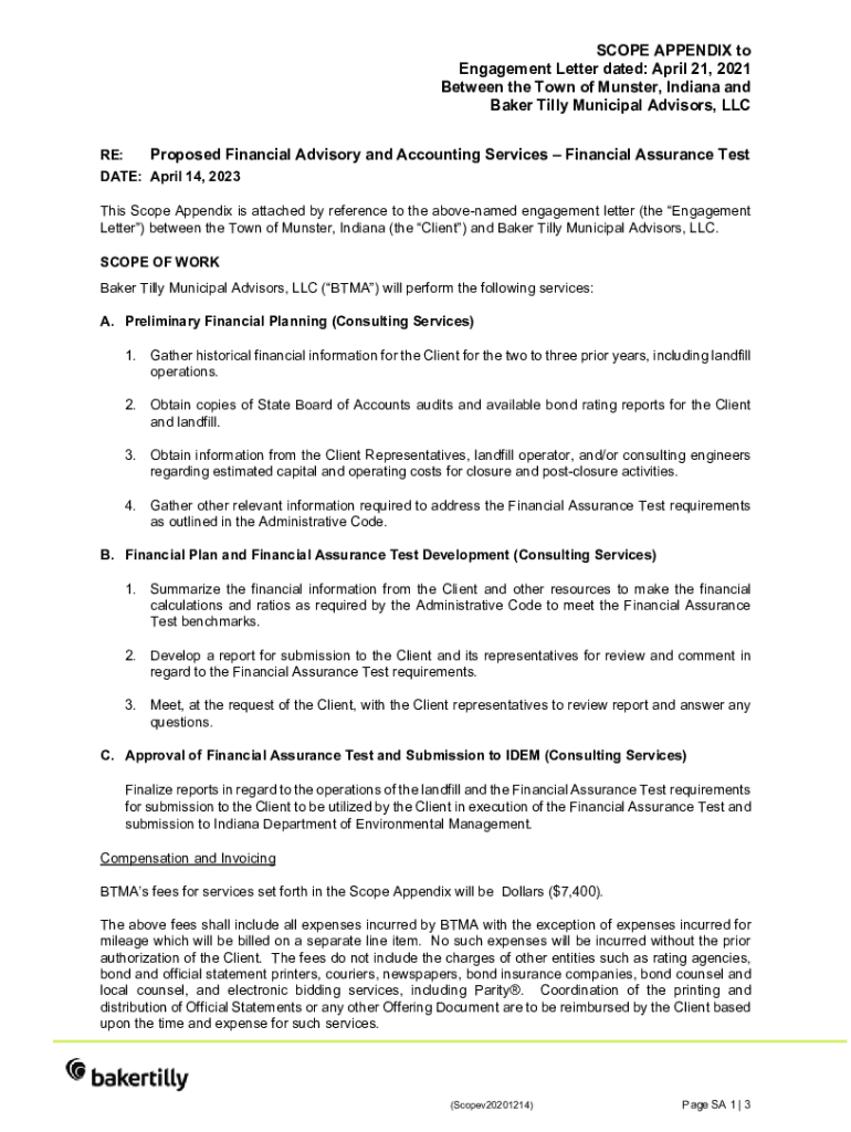 Get the free SCOPE APPENDIX to Engagement Letter dated: April 21, ...