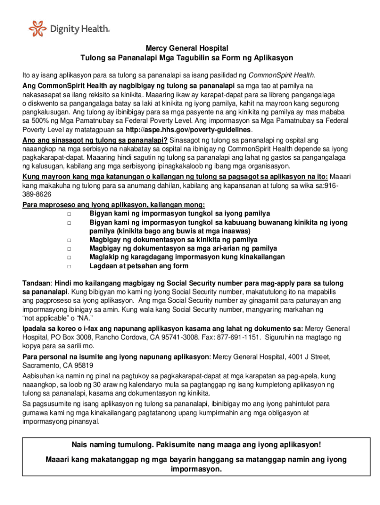 Tu long SA Pananalapi MGA Tagubilin SA Form NG Aplikasyon